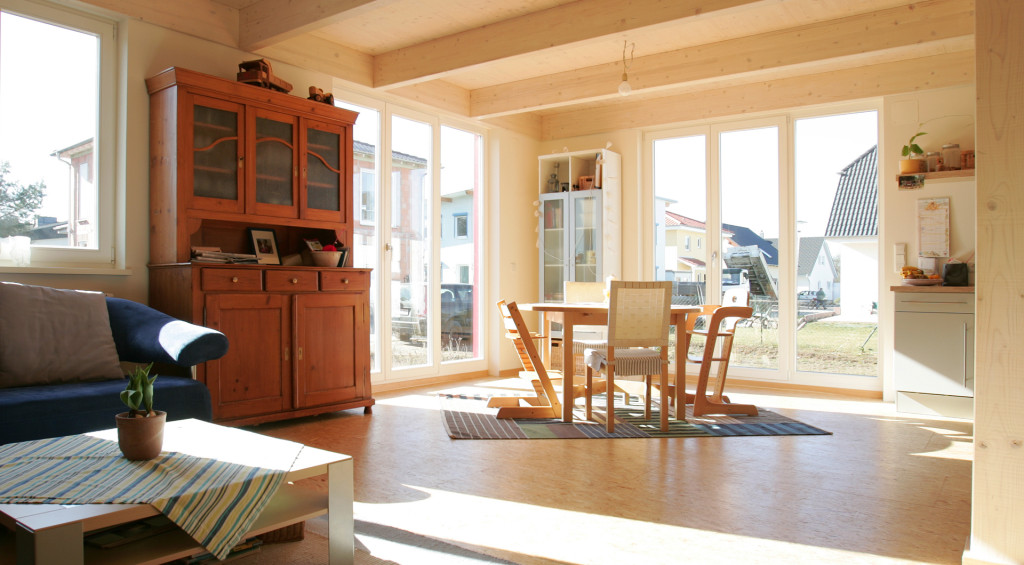 Haus mit Pultdach: Die Öffnung des Pultes richtet sich nach Süden und ermöglicht so eine optimale solare Wärmegewinnung. Eine Verschattung in den Sommermonaten ist Teil des Energiekonzeptes.